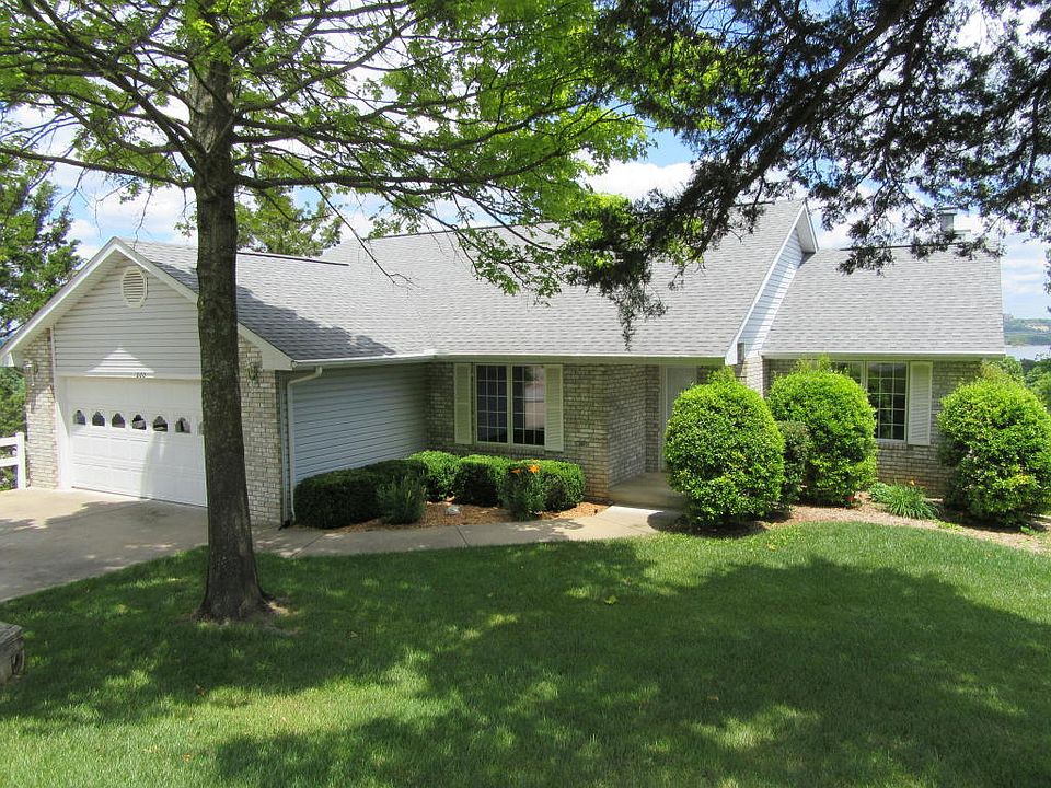 Gorgeous Panoramic lake view of Table Rock Lake. This immaculately kept 4 bedroom 3 bath home sits on two lots so you can protect your beautiful lake view. You can see the Chateau, Showboat Branson Belle and Baird Mountain from several rooms or back deck. Two stone fireplaces to take the chill off on cold evenings. The lower level in-law quarters has a separate entrance and driveway. Well maintained lawn has an in-ground sprinkler system. A must see for anyone wanting a beautiful lake view. Community has a boat ramp, community center, swimming pool and helicopter pad for emergencies. Slips in the community become available and are posted on the bulletin board at the community center.