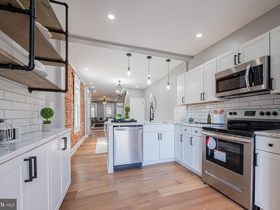 Beautiful renovation is move in ready! 3 bedroom detached home with tons of updates. New interior doors, fresh paint throughout, new trim , new kitchen featuring white cabinets with beautiful marble countertops, custom tile backsplash, stainless appliances, new wide plank wood flooring, exposed brick walls, new carpet, new ceiling fans, updated HVAC, recessed lighting everywhere, new fully tiled bathroom with all new fixtures and glass door, large deck, fenced yard, and the list goes on! This house has "it" !