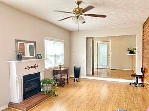 Nice roomy 2 bed 1 bath remodeled home with carport. Large living dining room area. Laminate and hardwood floors.Several large nice trees and fenced in back yard. New roof and recent new HVAC unit. Recently paved front street on corner lot. Metal storage building stays with home.