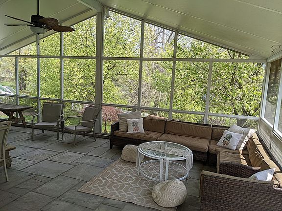 Unique custom built home on large secluded lot, with tons of trees and a creek. Inside you'll find tons of natural light from large windows that are throughout the whole house. Large kitchen with stainless steel appliances and tons of counter space. Dining room with gas fireplace. Playroom/bonus room. Large master suite with his and hers closets and master bath. Spacious family room with brick accent wall and gas fireplace, including glass sliding doors that lead out to a HUGE 550 sqft screened porch overlooking the backyard and creek. This large private lot is a rare find in town, with a nice 12x16 shed with electric. Includes central vac for easy cleanup. *3rd bedroom does not have window. (Navy and white room)
