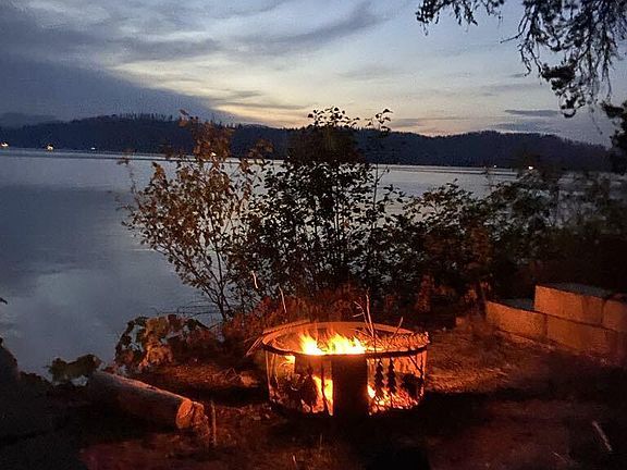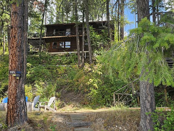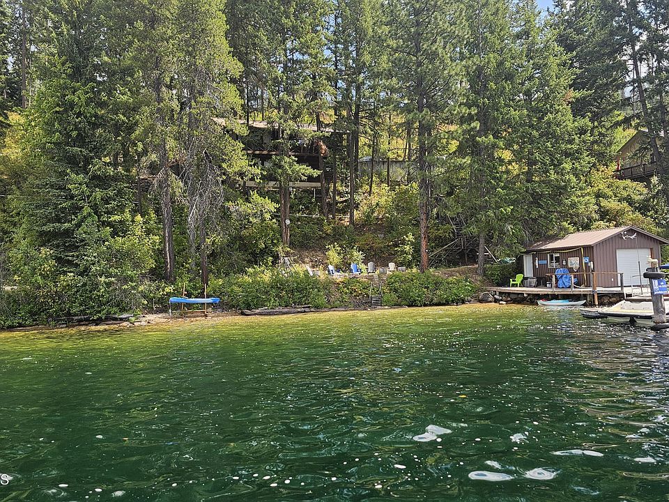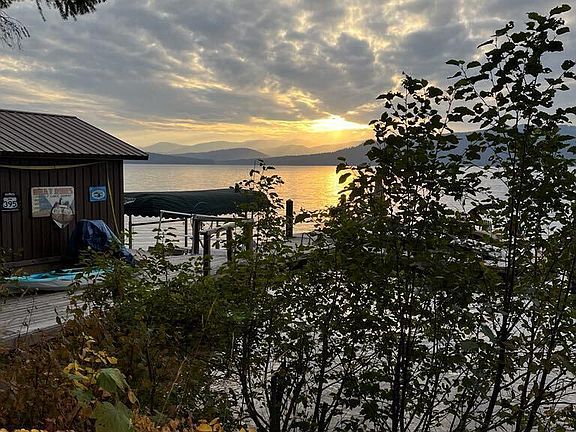 This private cabin nestled in the trees is in a much sought-after location. It is sheltered by 8-Mile Island to the South and Cape Horn/Indian Creek to the North. The panoramic views from the dock & deck allow you to see gorgeous sunsets and enjoy all day sun. This property sits on 1.02 acres with 161 deeded feet of beach frontage. Nice fire pit area and grandfathered in boat house. Good dock with steel pilings, boat lift and sun deck. The lake water system has has a complete water filtration system for drinking and new septic pump. Thereis an additional non-conforming bedroom downstairs too. (for a total of 5) and two bathrooms, along with washer/dryer and two newer energy efficient water heaters. 220v 40amp service on dock & Driveway for RV or EV. Furnished and ready to go! Easy access to all the mountain trails. Also has a fire suppression system: pump goes in the lake with a fire hose and electric start which is shared with the neighbors. This is a MUST SEE