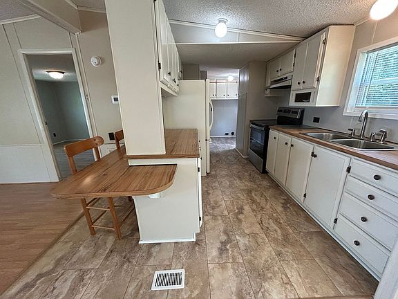 Currituck Home offering Great Room with Laminate Floors, Galley Kitchen offering plenty of Cabinets, open Countertop for extra sitting with Bar Stools to be used, Refrigerator & Newer Stove/Oven, Dining Area with Laminate Floors, Master Bedroom with New LVP flooring, Updated Bathroom & Walk in Closet, 2 Additional Bedrooms, Updated Hallway Bathroom, Deck to Sit and Shed to Store Your Lawn Equipment all sitting on approximately 1 acre.