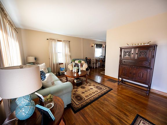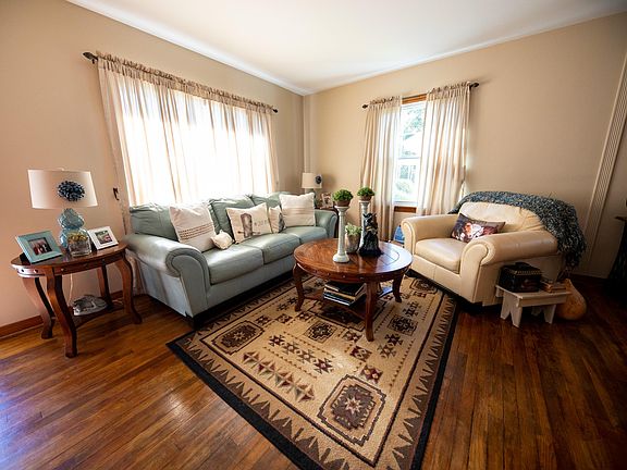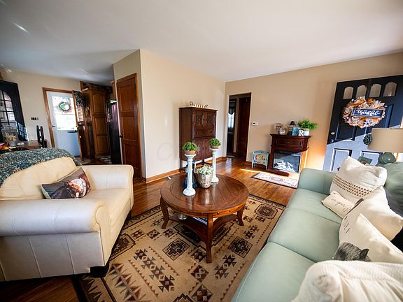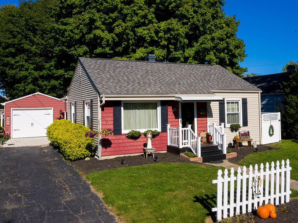 Welcome home to this adorable ranch style home with living room with hardwood floors, eating area, fully applianced kitchen, two bedrooms and a full bath on the main level, full 576 sq ft finished basement with a possible third bedroom, full bath, family room and laundry room, a huge back yard with beautiful shade trees, a covered patio, a shed and two car detached garage. Electric fireplace in the living room will convey, the washer and dryer are negotiable. Updates include the finished basement, the furnace, the roof, the windows, the appliances, the covered patio, the partial privacy fence and the upstairs tub was refinished. Come check out all this property has to offer!