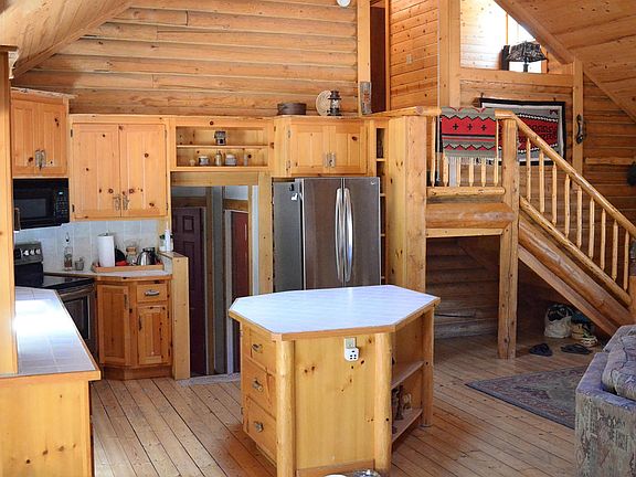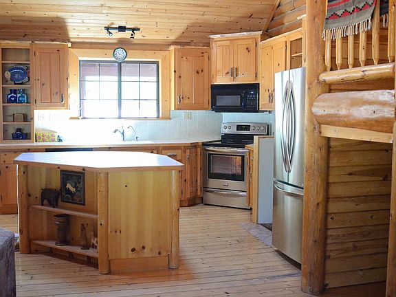 Two story log cabin with tall pines yet still close to all of the town amenities. 3 bed 3 bath and 2 car garage; gas fireplace for cool evenings; efficient mini-split AC/Heat; vaulted ceilings and skylights; covered deck for relaxing with friends!
