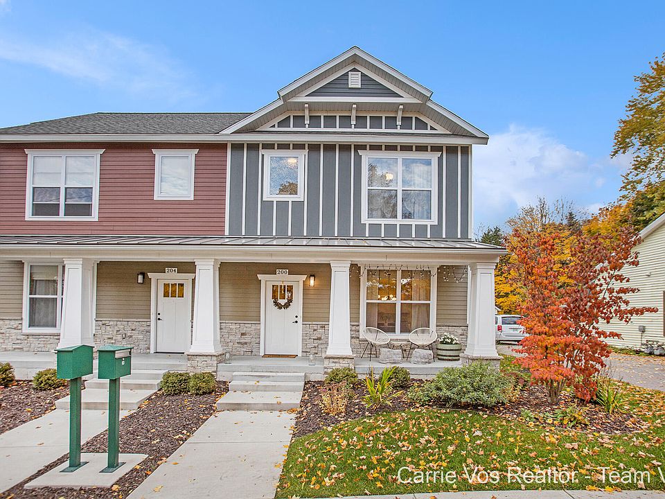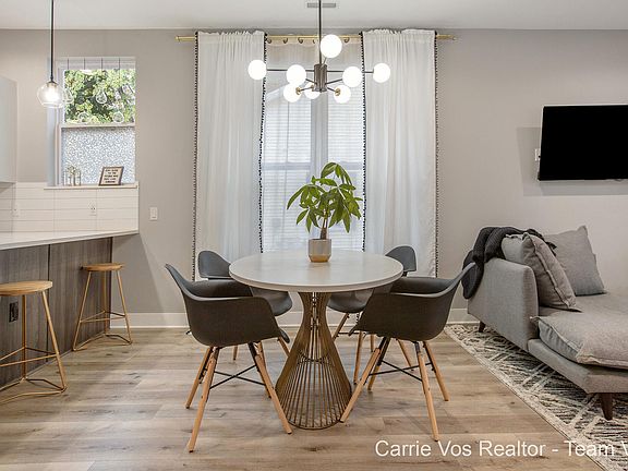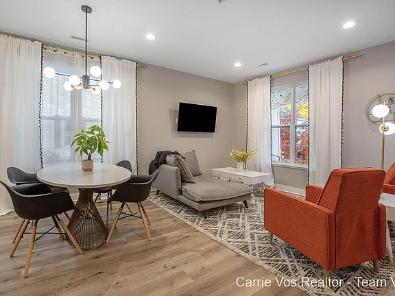 You will absolutely love this maintenance-free Townhouse with luxury finishes throughout that is just a block from Downtown Rockford & all the restaurants & quaint shops it has to offer. The main level offers open concept living featuring 10' ceilings, engineered hardwoods w/ a cozy living room, guest bath, dining & a stunning kitchen with custom cabinetry & granite counters. The upper-level features the primary en-suite with a walk-in closet, double sinks & private shower, the laundry, 2nd bedroom with window access to the outdoor terrace for enjoying the amazing views of Rum Creek. The 2-stall attached garage houses the mechanicals & private entrance. This move in ready home with the cool MCM vibe is just a block from the White Pine Trail & ready for new memories. Hurry, this is the one!