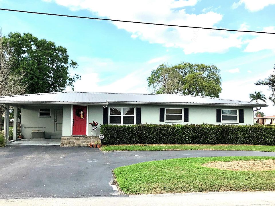 HOME IS WHERE THE HEART IS. Be ready to fall in love with this lovely, move-in ready 3/2 CBS home in a desirable neighborhood in Belle Glade. This corner lot beauty features a remodeled kitchen with gorgeous granite countertops and cabinets, with top-of-the-line stainless steel appliances, updated master and guest bathrooms with glass shower doors, all impact windows and front door, a security camera system and a metal roof. The main living areas have laminate floors and an extra living space which would be great for a family room, recreation room, office and more. There is also an indoor laundry room with washer and dryer included. It also offers a fenced backyard, a circular driveway and a large storage building (20x30) that could also be used as a great workshop, man cave or she shed.