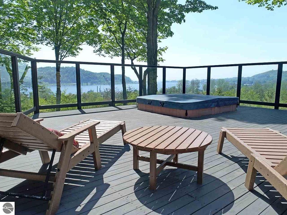 Hillside estate nestled in the rolling hills overlooking the City of Frankfort with over 3600 sq. ft. of living space with amazing views of the Betsie Bay, Lake Michigan and the harbor lights of Frankfort. You will appreciate main floor living which consists of an updated kitchen with granite countertops, separate dining room, great room with views of the sunsets over the waters below, family room with gas fireplace, master bedroom & private bath, one additional bedroom, a full bath, laundry room, large pantry, private office and mudroom with a half bath. The upper level is home to three other bedrooms, a private balcony and a full bath. The lower level is partially finished and can be used for entertaining or storage. The three-car oversized garage will be the perfect place to store your Pure Michigan toys. Outside you will find an oversized deck with views forever! This is your home to enjoy Pure Michigan - close to the Sleeping Bear Dunes, Lake Michigan, world class trout streams, swimming, boating, fishing, canoeing, kayaking, etc.... Other area attractions within a short driving distance are Point Betsie, Interlochen Center for the Arts as well as golfing and skiing at Crystal Mountain. Enjoy shopping and dining in downtown Beulah, Frankfort, and Traverse City.