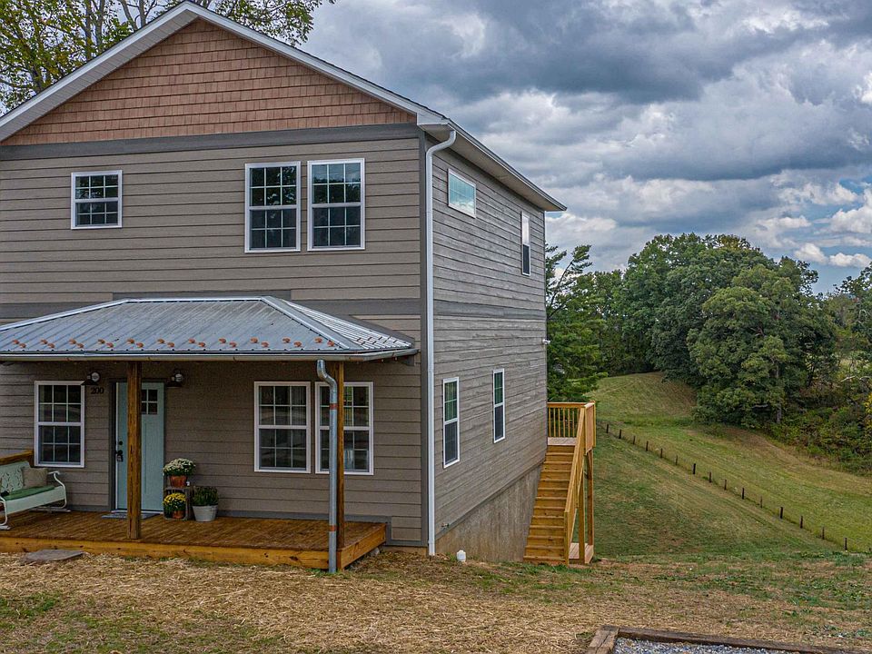 Enjoy the luxury of long range mountain views from the two story back decks of this newly constructed custom built home. Upgrades abound with rich stained hardwood flooring throughout main level. Rustic Appalachian barn wood highlights on the stairs, fireplace and kitchen bar along with a unique built-in mudroom area. High end stainless appliances including a Samsung Family Smart Hub refrigerator. Soft-close real wood cabinets in the kitchen and bathrooms. Custom ceramic tile surrounding bath/shower in both full bathrooms. Oversized closet in master. Zoned HVAC system with two thermostats. 2x6 Exterior walls for superior insulation. Storage and bonus space in the open unfinished basement. Mountain views from front and back of house. Only 20 miles from Asheville.