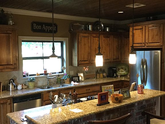 Beautiful custom built home with landscaped yard with curb appeal edging Includes custom molding throughout Split floor plan Wood floors/carpet/tile Price Negotiable Granite countertops in kitchen and bathrooms Beadboard ceiling in kitchen Formal dining and breakfast area Brick island and accent walls in the kitchen Custom cabinetry throughout Trex decking off of the living area Large workshop attached to garage Total 2150 sq ft heated total 3545 includes garage , workshop and porches View of Winthrop Lake from the back of home