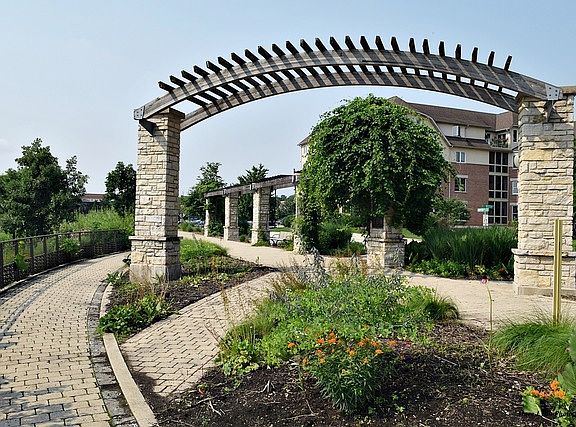 1st floor corner unit Fox River views from every window. Former model, custom fireplace mantel,built in cabinets dining rm, granite & 6 panel doors. Master suite w/plantation shutters & double closets. Master bath w separate shower & tub plus double sinks. Bedroom 2 with private bath. Powder room! Bay windows to enjoy the river views! Elevator, underground reserved parking & secured entry.
