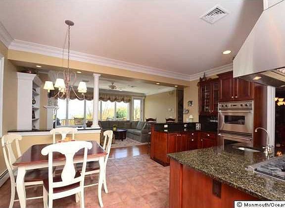Beautifully built and maintained 4 bedroom home with both bay and ocean views from almost every room. Great attention to detail, 4-zone heat and AC, gourmet kitchen with Viking ovens and 6-burner cook top. Large master bedroom suite with spectacular views adjoining private family room with fp. Walkout lower level with sauna and hot tub. Multiple decks with patio and outside kitchen overlooking private rear yard. Two minute ride to NY Ferry and the charming village of Atlantic Highlands.