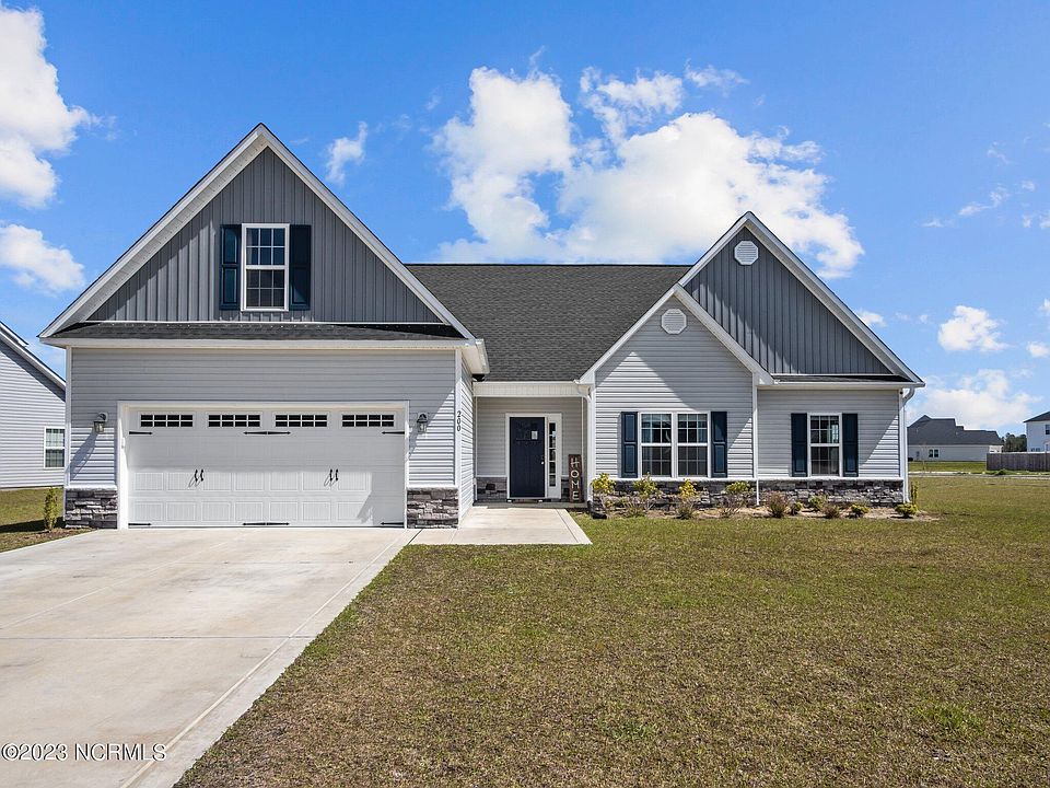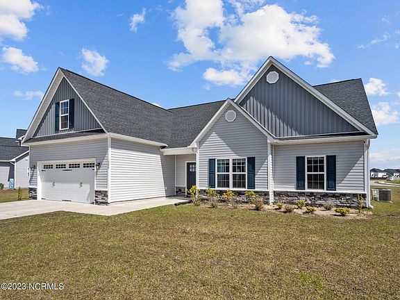 Welcome to the highly desired and popular community of Onslow Bay. Just 3 miles to MCB Camp Lejeune's Piney Green gate, 14 miles to New River Air Station and minutes to area schools, shopping and dining. Great nieghborhood amenities complete with a clubhouse area and community pool. This beautiful home features 3 spacious bedrooms and 3 bathrooms at approximately 2,283 heated square feet. The exterior is quite charming with easy-to-maintain vinyl siding accented by stone or brick. The foyer welcomes you in, in to a lovely, open living space. At approximately 16'x18'', the family room is perfect for gathering the entire family for movie or game night. Complete with a double trey ceiling, ceiling fan, and an electric fireplace situated in the corner, surrounded by marble and topped with a custom mantle. The chef in the family is sure to fall in love with the kitchen! Flat panel, staggered cabinets topped with modern granite counters. Stainless appliances include a smooth-top range, microwave hood, and dishwasher. The spacious dining area is open to the kitchen. The master bedroom is approximately 15'x14' and features a ceiling fan, trey ceiling, and walk-in-closet. Unwind after a long day in the luxurious master bathroom. Double vanity topped with cultured marble counters, full view custom mirror, ceramic tile flooring, separate shower and soaking tub. Bedrooms 2 and 3 are approximately 11'x13' and 12'x12' with double closets . How about a large bonus room with a full bathroom!! Dont miss it!!
