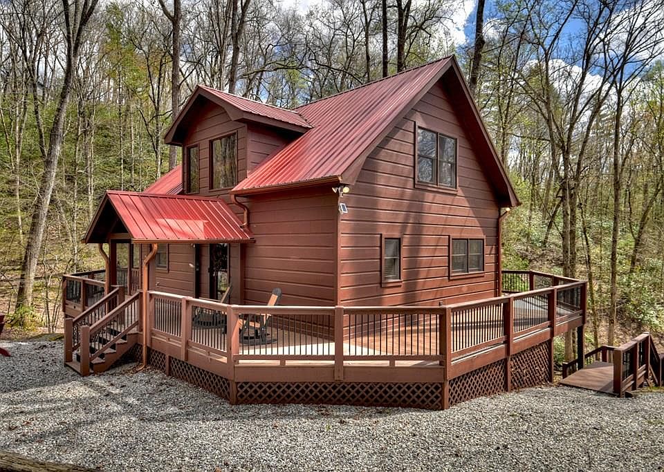 Welcome to “Dancing Bear Lodge!” Aska Adventure Area chalet with large wraparound composite wood decks, screened porch, jacuzzi area overlooking a babbling creek and complete privacy, detached workshop, and seasonal mountain views. Complete with three bedroom suites and spa-like bathrooms with walk-in tile showers and a standing vessel tub. Granite countertops, stainless steel appliances and bountiful storage create a gourmet mountain culinary experience. Timeless rustic charm with large stone fireplace, soaring cathedral ceilings, and real hardwood floors. Gated entrance, minutes to the Toccoa River, sold fully-furnished and walkable to USNF.