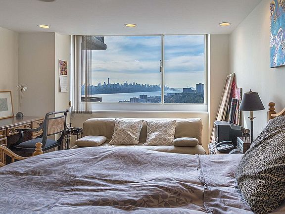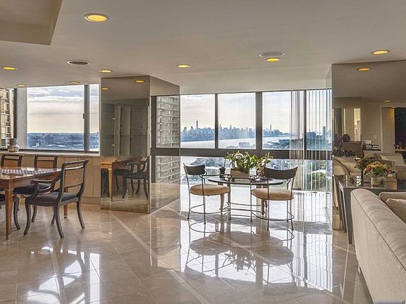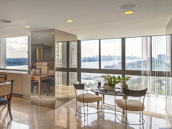 Two-storey duplex (16th & 17th floors, 2306 sq. ft.) with magnificent New York city panoramic views and Hudson river views! Includes two covered parking spaces in the basement, in the prestigious River Ridge Condominium. Views (clear and expansive) are from every single room in this beautiful home that has a top of the line kitchen w/white natural stone counter and top notch appliances (Sub Zero, Electrolux and a built in wine cooler). Marble entry with coat closet/laundry, very spacious formal living area, a spacious solarium that is a delight as a comfortable nook with the best views in the home, formal dining area and marble powder room complete the first floor. Second floor has a huge master suite w/gleaming hardwood floor w/marble master bathroom and second bedroom w/full bath. Full amenities building and maintenance includes 24-hour doorman, concierge, season outdoor swimming pool, bbq area, health club, sauna and storage bin in the basesment. Very close proximity to the city makes this building even more worthwhile to live in. Enjoy an elegant life style in a beautiful unit!