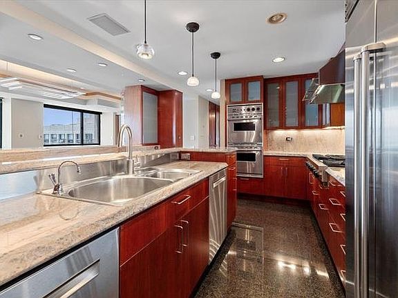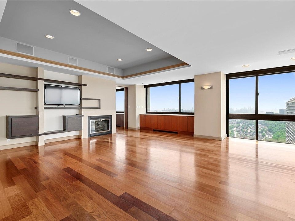 Perched atop the Fort Lee skyline, this 2-bedroom, 2.5 bath Penthouse is the jewel of luxury living boasting outrageous wraparound views of both New York and New Jersey, that stretch as far as the eye can see. The Primary suite is like a private retreat with a spa-like bath and two oversized walk-in closets. And, yes, there are two guest suites with full baths for family and friends that would like to stay over. There's another bedroom and even extra space for a den or office. Lots of storage space throughout and even a separate entry from the main living space. Three fireplaces and more. All the amenities are included: 24 Hr Doorman, separate Bbq lounge areas, Jacuzzi, gym and outdoor pool and 4 indoor parking spaces! All at River Ridge.Wake up to the panoramic view of the NYC skyline, the Ramapo Mountains and everything in-between. Inside, you'll find cozy elegance and sleek-designed living spaces; cherry-wood floors and pocket doors. Chef's kitchen and loads of space to entertain.