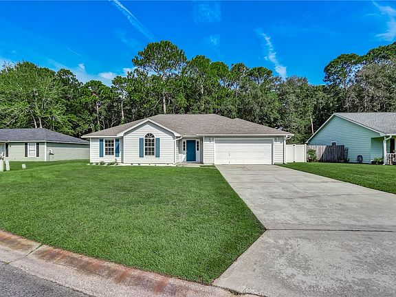 Take a look at this floor plan! This 4 bedroom, 2 bathroom home (or a 3 bedroom with a perfect bonus room/ office) is perfectly located in Kingsland; close to schools, restaurants, and stores; I-95 and Kings Bay Naval Sub Base. As you come through the covered front porch and foyer with coat closet, you continue to the open living space with high ceilings, dining area and kitchen. Kitchen includes the refrigerator, stove, micro hood and dishwasher. Offering a split plan, the primary suite has a large walk in closet and a bathroom with double vanities, a soaker tub shower combo and private water closet. Two bedrooms and a full bath is located on the opposite side of the home. A fourth bedroom or bonus room/ office is located off the dining space. Indoor laundry room as you enter from the two car garage. Automatic garage opener for convenience. New paint throughout. New carpet in bedrooms. Luxury Vinyl Plank and tile throughout the remainder of the home. Large fenced back yard with oversized patio deck. Storage shed conveys.