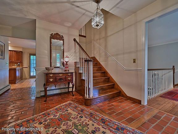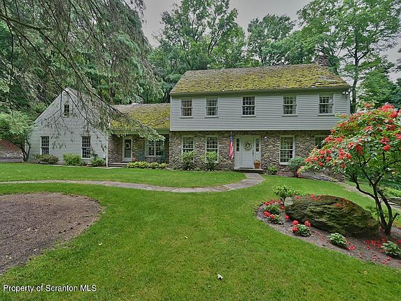 ONE-OWNER CUSTOM-BUILT home situated on park-like 4.8 acres ideal for the growing family! Celebrate nature and the change of seasons in your own yard, yet only minutes from downtown Clarks Summit. Impressive throughout with spacious rooms, home boasts gleaming wood floors; distinctive built-ins; plastered walls; crown moulding & chair railing; 3 fireplaces; great closet space; zoned gas heat & storage attic. KItchen's French doors have access to 26'x20' stone patio as well as a gazebo. Relaxing family room features beamed ceiling, tongue & groove solid pine walls, fireplace and built-ins. You'll love the dramatic sunken living room for entertaining! Fun gatherings will enjoy the spacious LL family room with wet bar & stone fireplace. Work out in your own fitness room with the attached Sauna & 3/4 bath. (This LL area can also be used as guest suite if needed.) Truly a great property in a great location and best of all .......It Can Be Yours!!