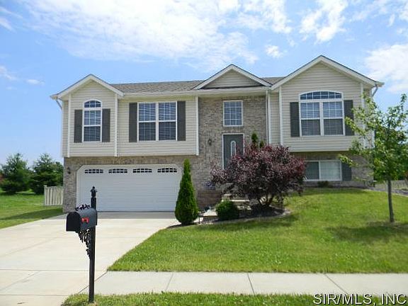 Exceptional Bi-level with 4bdrms, 3 baths, gas frplc, & fenced in yard. Colonial 2-panel interior doors, rounded drywall corners, vaulted ceilings, & brushed nickel fixtures. The amazing kitchen features a large center island, granite countertops, hrdwd floors, tile backsplash, black appliances to stay, & large dining area. Living room on main level w/ frplc, large picture window w/transom window above is all open to the kitchen and dining areas. Finished walkout LL w/ family room, bedroom, bath, and plenty of storage. Master bath w/ oversized master bath w/ walk-in closet. Water softener stays. Security system. Fenced in backyard with patio and deck plus firepit. Fence and deck are in the process of being professionally painted and will be completed by Friday, June 12th weather permitting. This is better than NEW!! For more info or a personal tour please call RE/Max Alliance agents Michelle Heinlein at 618-781-2322 or Scott Heinlein at 618-558-1298 or visit www.MichelleHeinlein.com