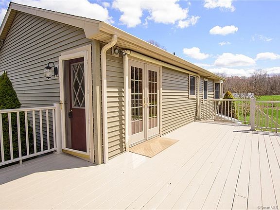 Beautifully landscaped, this home offers 1.21 acres of land with access to miles and miles of walking trails, abuts the Natchaug State Forest, with stone walls bordering the property lines. Come spring and summer, the formal garden area will bloom with herbs such as mint, thyme, and oregano along with fresh asparagus along the garden bed. There's plenty of parking spaces with a long drive way and a 2 car detached garage with a newer roof. The wrap around deck offers plenty of space, newly painted, with a pull out awning to keep the sun away when desired. Two entrances into the house from the deck through french doors or the side door. Inside, the eat in kitchen offers newer appliances, tile flooring, and soap stone counter tops. The family room is mint condition, wall to wall carpeting, a closet for storage, and a beautiful bay window over looking the front yard and views. Three bedrooms and a full bath on the main floor, on the lower level is a living room area with hardwood flooring, a bonus room with wall to wall carpeting and a closet. Across the room is the laundry area with washer and dryer and down the hall is a half bath which offers a flush up and out pumping system. This home is in pristine condition and is absolutely move in ready