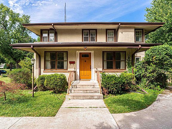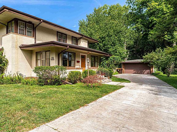 Park Place beauty! Captivating 4 bedroom, 2.5 bath Frank Lloyd Wright inspired stucco home with SO much character! Main floor boasts a fantastic 11X24 enclosed front porch, captivating living room with amazing woodwork, fireplace, hardwood flooring, remarkable corner built-ins, and abundant natural light, beautiful formal dining room with additional built-ins, equipped efficient kitchen, rear laundry/mudroom, and a quaint hall half bath. Up the double sided staircase you will find four roomy bedrooms -- three with hardwood flooring -- master with a full adjacent bath -- as well as a second full hall bath. The full deep usable basement boasts ample storage/work space. Property also features a two car detached garage, rear patio, massive fenced backyard (two lots -- 70X167 plus 80X120), newer roof (membrane) and gutters (2016), updated water heater (2016), furnace and central air conditioning unit (2017) -- the list goes on! Such a rare opportunity to own this one a kind property!