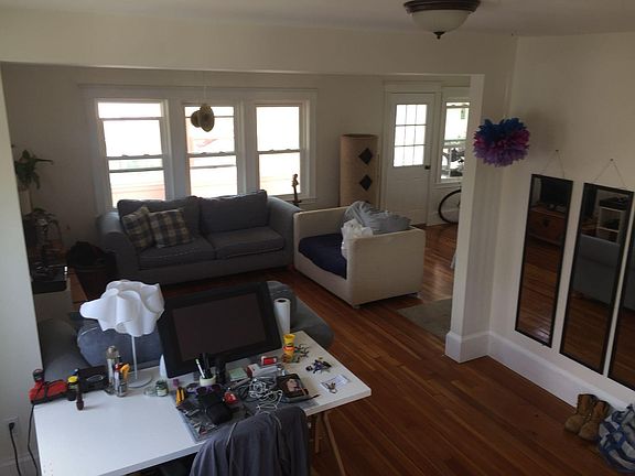 Spacious duplex unit, huge living area with hardwood floors, 3 season porch extends off the living room, eat-in kitchen with built in granite breakfast bar overlooks the living room, HE laundry in the unit, 3 full tile baths, walk in closets, spacious bedrooms and closet space. The property was completely rehabbed in 2014.
