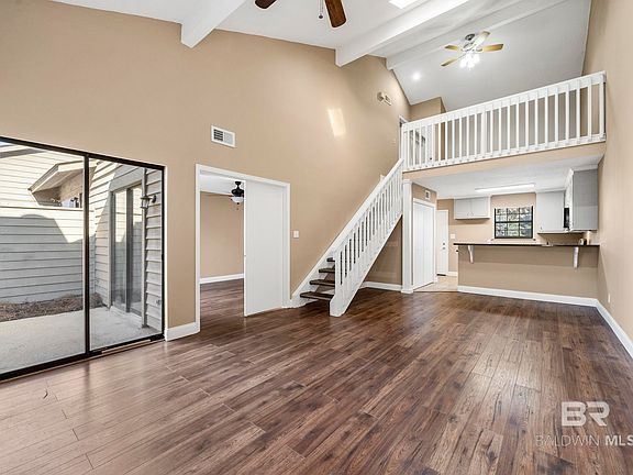 Welcome to Loma Alta Townhomes! This unit features two primary suites, one on the main level and one upstairs. Open floorplan with vaulted ceiling and wood burning fireplace in the living/dining area. The kitchen has granite counters, breakfast bar, updated appliances and plenty of cabinet space. In addition to the second suite, upstairs you will find a loft/flex space with closet and could easily be converted into a third bedroom. This unit also has a fenced courtyard with access from the living room or primary suite, exterior storage closet,one assigned parking spot and only steps away from the community pool. Loma Alta is located near everything Daphne has to offer: Shopping, restaurants and easy access to I-10 for commuting to Mobile or Pensacola. Buyer to verify any information deemed important.
