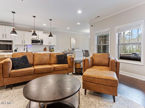 Step into this exquisite home boasting 2 bedrooms and 3 full bathrooms, designed with an open floorplan that maximizes space and comfort. The kitchen is a true highlight, featuring quartz counters, a generously sized center island complete with a charming farm-style sink, an electric range top, a double oven, and a spacious walk-in pantry. The primary bedroom, conveniently located on the main floor, showcases a tray ceiling for added elegance. Its ensuite bathroom offers a dual vanity, a beautifully tiled walk-in shower, and a large walk-in closet. Another bedroom and a full bathroom can also be found on the main floor. Moving upstairs, you'll discover a remarkably large bonus area that could easily serve as a 3rd bedroom, accompanied by yet another full bathroom. Unwind and enjoy the peacefulness of your covered back porch, which opens up to a deck and a backyard enclosed by a stylish wrought iron fence.