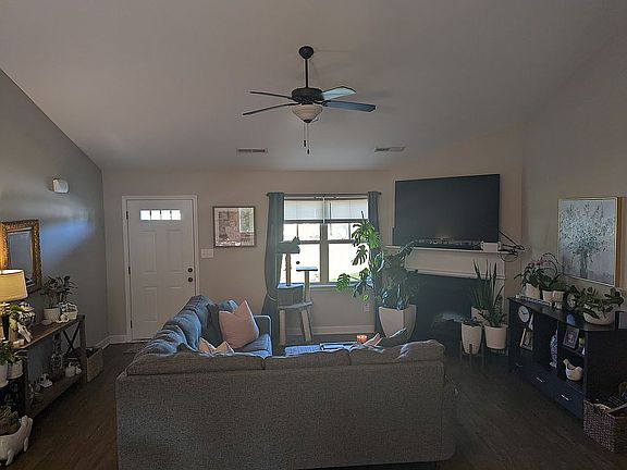 Beautiful single story, single family home on a corner lot. Vaulted ceilings in the open concept living/kitchen/dining rooms. Electric fire place. Master suite with walk in closet. Open kitchen with island for extra prep and storage space. Septic system on site. Gutters and down spouts added in 2021. HOA is $100 yearly.