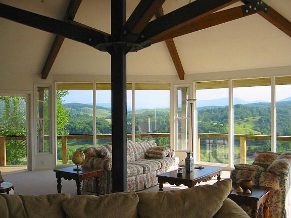 360-degree breathtaking mountain views in SW Rockbridge County. Contemporary home, large open spaces. Sunny great room with 50-foot 180-degree wall of windows, gas fireplace; dining room with House Mountain view; fully equipped modern kitchen; master suite with dynamic views, 2nd gas fireplace, walk-in dbl shower. 2-car att'd garage. Wrap-around deck with valley and mountain views in 3 directions.