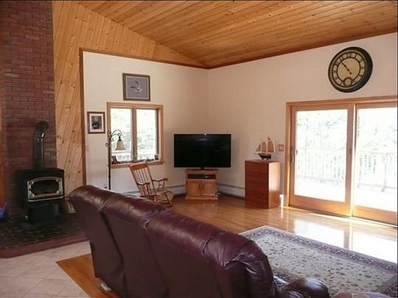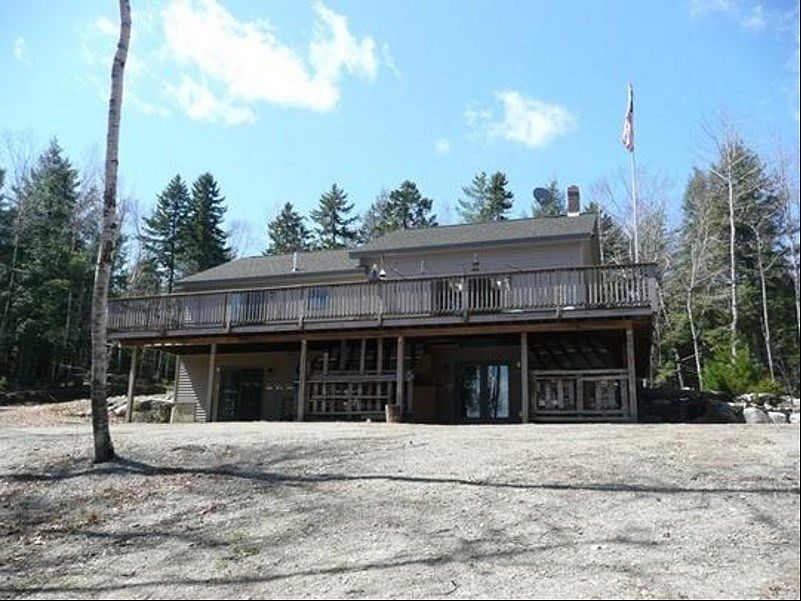 Quality lakeside home Custom kitchen w/granite counter-tops, tile and HW flooring throughout, 3 bedrooms 3 full baths, over 2600 sq. ft. of living area. 28x30 garage with a 12x28 drive through for boat or tractor storage w/second level apartment possibilities, over the main garage. 397' waterfront on a private 5.2 acre lot. You can launch your boat from the front yard. Large 55x12 deck overlooking lake with front /side decks, great spot for your "hot tub". Showing a couple pics of flowering crab apple trees. Retiring and want to downsize, would be willing to listen to idea of using another home as partial payment on ours. Quite flexible. Questions ?? Call 207 537 5826