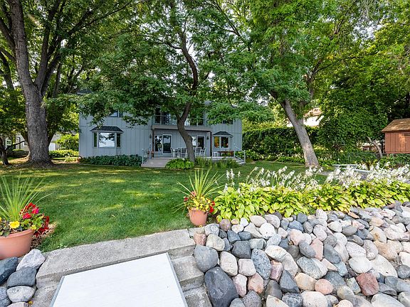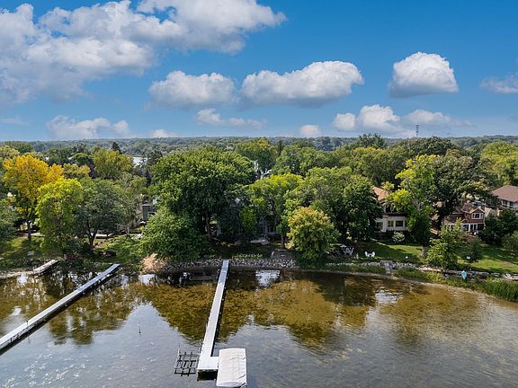 Lake life awaits you minutes from downtown MPLS. This 4000 sq ft home is located on the highly sought after peninsula of Medicine Lake with 100' of shoreline and beautiful views from every room. The main floor offers formal dining room adjacent to eat-in kitchen with Cambria counters. Living room w/wood burning fireplace that opens out to lake and large deck. 3 additional bedrooms, 2 bathrooms and laundry round out the main floor. This home offers a separate entertaining wing with kitchenette, family room w/fireplace that also opens out to lake and large deck. This space has separate stairs to a full en-suite and loft area perfect for guests or family. The additional upper level bedroom suite is accessed by separate stairs with balcony overlooking the lake. Oversized 3 1/2 stall garage, beautiful perennial gardens and trees cover the grounds which offer a perfect setting for the lake. Rip rap and sand along the shoreline. Dock comes with the property.