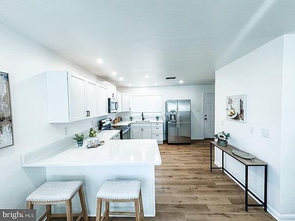 Welcome to this elegant, modern ranch-style home located at 200 Pilgrim Road in New Castle, DE. This end-unit residence boasts a prime corner lot and has been meticulously renovated with painted white brick and modern black accents, offering a luxurious living experience. Encompassing 1,025 square feet, this home features 3 bedrooms, 1 bathroom, and sits on a generous 5227 square foot lot. The property showcases a new roof, windows, HVAC, and driveway, ensuring both aesthetic appeal and functionality. Upon entering, you'll be greeted by the open-concept living room and kitchen, adorned with luxury vinyl plank flooring, exuding contemporary charm. The brand-new kitchen is a culinary delight, boasting custom white cabinets, a wrap-around quartz countertop, a breakfast bar, all new stainless steel appliances, and matte black hardware. The bedrooms are adorned with new carpets, offering comfort and style. Additionally, the home includes a convenient washer-dryer combo, providing modern convenience. Outside, the property features ample outdoor space in the front and side yards, ideal for outdoor activities and entertaining. Easy access to I-295 and I-495 as well as public transportation and dining options on New Castle Ave make this home perfect for locals and commuters alike! This home is a true gem, offering a seamless blend of modern elegance and comfort. Don't miss the opportunity to make this stunning residence your own.