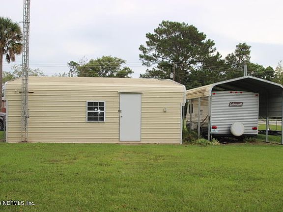 This adorable site built home with access to the St Johns River is move in ready! This 3BR/2BA comes with deeded boat slip with lift (7x20) , screened back porch, attached carport, large storage building (12x25) with room for one car and workroom with window a/c, 12x20 additional covered parking, sprinkler system, well for irrigation, chain link fenced back yard. $50/year for boat club membership is required. Enjoy all of the recreational opportunities of the river, without paying waterfront taxes!