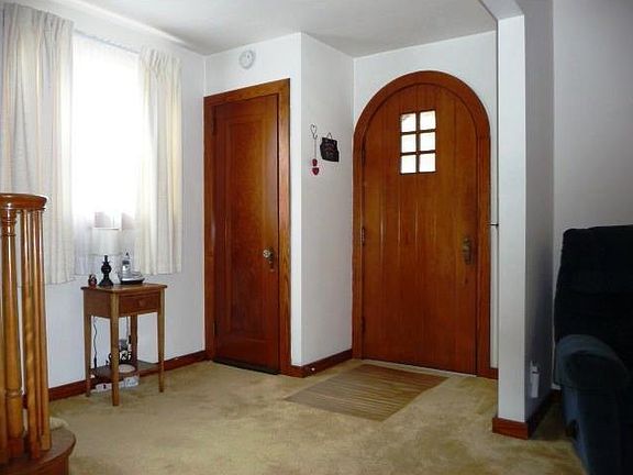 HERE'S YOUR CHANCE! This charming two story colonial says welcome home the minute you walk in! Located on a meticulously maintained corner lot this home shows pride of ownership. Step onto the covered front porch with updated railings and arched door. Inside you will find a nice sized living room with cozy gas fireplace that opens to the formal dining room with lighted ceiling fan. Steps away is the kitchen with white cabinetry, large farm style sink, refrigerator, smooth top electric stove and ceramic tile breakfast bar. You will also find a door with a stained glass transom to the updated trex deck and fenced rear yard. Upstairs you will find a spacious bathroom with ceramic tile floor, wainscoting and tub shower combo with tile surround. There is an updated pedestal sink and faucet and linen closet. The master bedroom has a large dormer window, hardwood floor and lighted ceiling fan. There are two additional bedrooms with hardwood floors and closet. There is a full unfinished basement just waiting for you to turn it into a man cave or game room. Outside you will find off street parking and a one car garage with opener. Other features of this home include: central air, updated windows with blinds, large utility /laundry room with laundry sink, newer roof and railings, updated awnings, updated 220amp electrical box and concrete patio. HMS HOME WARRANTY IS INCLUDED!