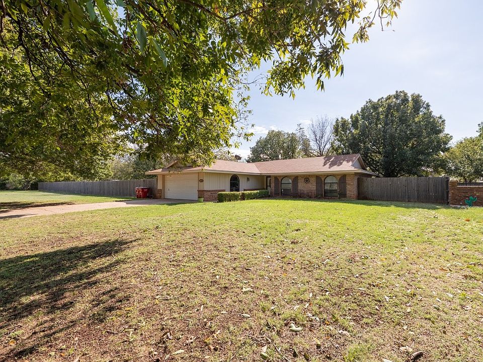 Wonderful brick home with great curb appeal. 1637 sq.ft. three bedrooms, two baths, 2 car garage plus detached 720 sq.ft. 2 car garage or shop all sitting on 3 lots (.88 acre). This home is VA approved handicap accessible. Brick and siding exterior, updated fans and led light fixtures. Updated wood-burning fireplace in the living room. Walk-in closets in all bedrooms. Privacy fence and chain link cross fence. Mature pecan trees, also several fruit trees.