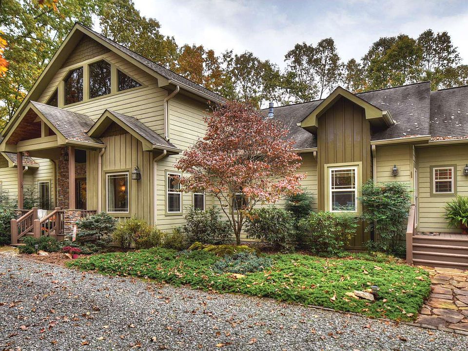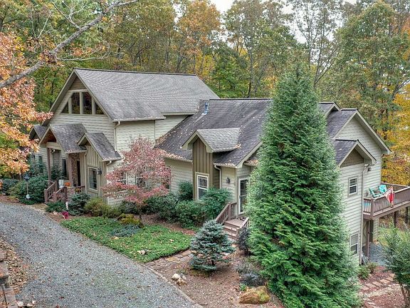 Beautiful craftsman home that's perfectly situated on 3+ acres; seasonal mountain view; paved rds, hi-speed internet & no HOA fees. You'll be wowed with the soaring exposed beam ceilings in the living & dining room. Home features 4BR/3.5BA with open living area, energy efficient pellet stove, gas log fireplace, built-ins, surround sound, well appointed kitchen, breakfast nook, walk-in pantry, mudroom, laundry room, home office. Luxurious master suite w/sitting area, spa-like bath & private balcony. Finished terrace level has huge family/game room, kitchenette, wet bar, 2 BR, full bath, tackle room, workshop & storage. Enjoy outdoor living on the lovely screened porch and terrace deck. So many extras: 1 car oversize garage, dual zoned HVAC, tankless hot water htr, water filtration, security & more. Small boutique community, less than 5 miles from Downtown Blue Ridge. Vacation Rentals Allowed.
