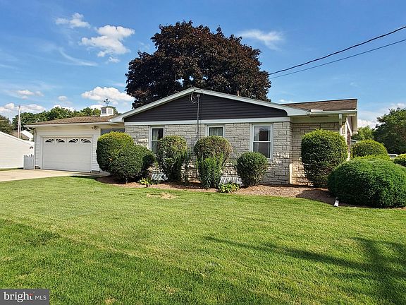 Solid 3BR/2BA ranch home on corner level lot in Palmyra! Hardwood floors showing in 2 bedrooms and hall closet and Executor believes there is carpet under other bedrooms , living rm and dining rm. Recent updates include water heater '17, heating '15, central air '17 and 200 amp electric service. Master bedroom has it's own private full bath with tile shower, cedar closet in hallway, Lower level features a finished family room in with bar area, two large unfinished rooms, one with workbench with cabinetry and large storage cabinet. Door from basement to outside access. Enclosed breezeway between home and 2 garage is great for additional living space (3 season room). Some cosmetic updating needed (flooring , kitchen and baths), but overall a very solid home and move-in condition.