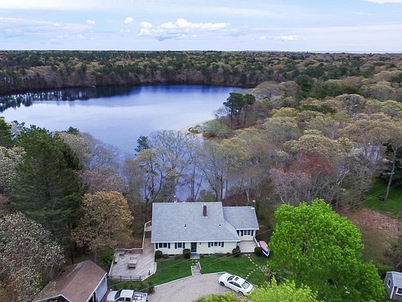 This well loved Cape Is perched high above Joshua's Pond to capture spectacular views of one of the Capes best swimming ponds. This very private 1.52 acre location is surrounded by conservation trails and has a beautiful outdoor entertainment area w pebble tech *Pool & spacious 2 room *Pool House with full basement and additional Laundry. The home has wonderful views, flows nicely and is centered around walls of glass in the living room, dining room, Great room and first floor master bedroom. Upstairs is another bath and 3 additional bedrooms. Walkout basement could provide more living space. Tell your friends and family to bring their bathing suits, paddleboards, kayaks and get ready to create cherished life long Cape Cod memories!