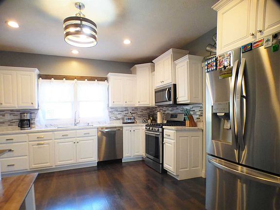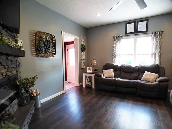 NEWLY RENOVATED WITH STYLISH UPDATES! A 1-Year Home Warranty for Buyer is included with this 3 bedroom, 2 bath home has a brand new kitchen and much more. The large master suite features double sinks, large walk in closet and brand new carpet. Open the front door off the composite deck/front porch into the inviting entryway then into the large living room and your eyes immediately go to the stunning focal point of a stone wall with fireplace and large mounted TV (which both stay). The new flooring extends into the kitchen and family organization center near the back door. The new kitchen boasts stainless appliances, new cabinets and backsplash. Two bedrooms and another full bath are on the other side of this split bedroom floor plan. These bedrooms feature lofts for studying or watching TV and unique built-in beds. There are 2 water heaters so you will not run out of hot water. Out back is a spacious partially covered deck and hot tub. The double lot includes a post frame building with cabinetry and a wood burning stove, a garden spot and play area with playset included. MOVE IN READY home will qualify for no-down payment loan.