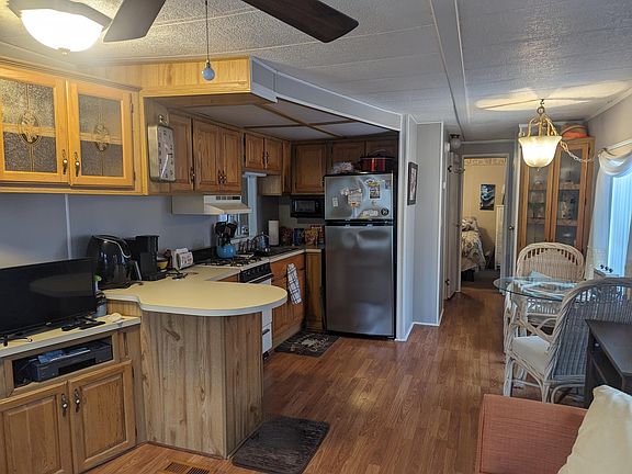 THE ONLY UNIT AVAILABLE IN THE PARK!! This corner unit offer 2 full bedrooms, vinyl flooring throughout, open kitchen with eat in area, 2 sleeper sofa's, decent size bathroom with built in storage. Unit has a new roof, fenced in yard, serviced central air unit, front porch, rear deck, nice size shed. Unit has lots of windows to let in the natural light and makes the unit bright and cheery. All you need to do is unpack, this unit comes fully ready to go, including 2 Tv's~ This unit is unable to be financed due to the seller's not having the DMV title, they purchased the unit with an attorney drawn Bill of Sale and they will provide one to the new buyer.