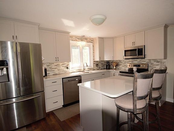 Lovely and Charming Cape style home! This home has so much to offer its new owner; new kitchen with quartz counter tops and tiled back splash and appliances along with center island with additional storage and seating. Kitchen offers a pantry behind a stylish sliding barn door. Dining room is open to Kitchen making this a great home to entertain in! Front to back living room with fireplace and french door out to back deck. Desirable Layout. All three bedrooms are on the second floor along with the full bath. Huge and private back yard with plenty of room to play with storage shed. Located close to the Abington/Whitman line.
