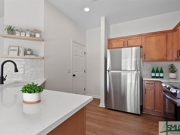 Beautifully renovated with designer touches throughout! This open floor plan offering spacious great room, dining area, updated kitchen with new quartz countertops, breakfast bar, tile backsplash, stainless steel appliances and fixtures are just a few of this 3 bedroom, 2 bath home's great features. new roof, new vinyl plank flooring in living areas, new carpets in bedrooms, new interior paint, updated ceiling fans and light fixtures inside and out. Bathrooms upgraded with new vanities and hardware, primary ensuite with walk-in closet, new dual vanities/hardware and garden tub. Enjoy your back patio in your fenced in backyard. This home is conveniently located to schools, churches, restaurants and recreational facilities and both Hunter Army Airfield and Fort Stewart. This gem will not last long, call your favorite Realtor today!