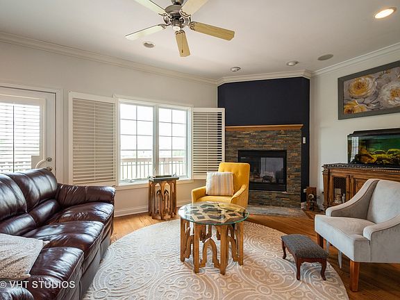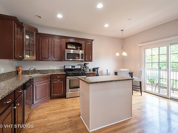 Gorgeous Highland Terrace townhouse with upgrades, built-ins and a fabulous location. 9 foot ceilings, many architectural touches and a chef's kitchen with Stainless Steel appliances, large cabinets, granite countertops, island, eating space and it's own balcony! Great sightlines throughout the first floor with an additional balcony off the living room. Gas fireplace with mantle in the living room. Work at home in the second floor office with built-ins. Master has his and hers walk-in closets, jetted tub and a separate shower. Second bedroom has its' own ensuite bath. The lower level has a family room and a large laundry with plenty of cabinet space. Walk to downtown Wauconda, the lake, parks and schools.