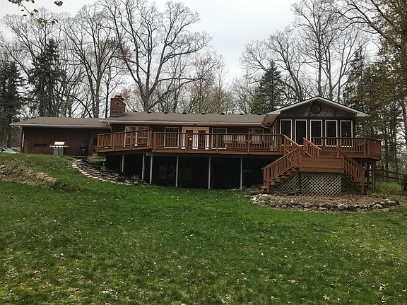 Large 4 bedroom 2 full bath home in a secluded, yet close to town, area. Expansive deck perfect for entertaining. Peaceful sunroom off the master bedroom. Full finished walkout basement. 2 story pole barn is an ultimate man cave, with heat and electric. Tons of storage along with workshop in basement.