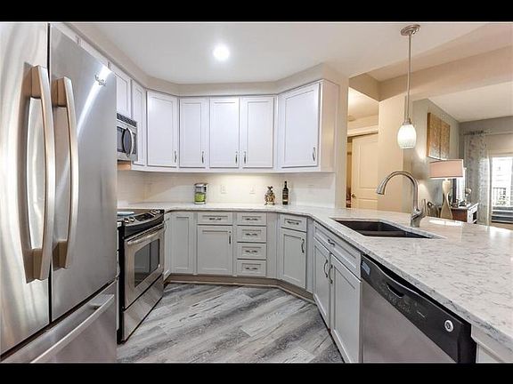 Stylish remodel corner unit with quiet courtyard views. Sleek kitchen boasts quartz counters, refaced shaker soft close cabinets, subway tile backsplash, LVT flooring, chic lighting, designer paint, plantation shutters and much more! All appliances remain. Resort style amenities include attentive concierge, 24 hour security, gated landscaped grounds, renovated clubhouse with two salt water pools, gym, spa room, and dog park. Access to Cochran Shoals at the Chattahoochee and close to fun at The Battery. Easy access to I-285/I-75/400. Luxury living at ORP! water and sewer included..Pet's will require Pet deposit
