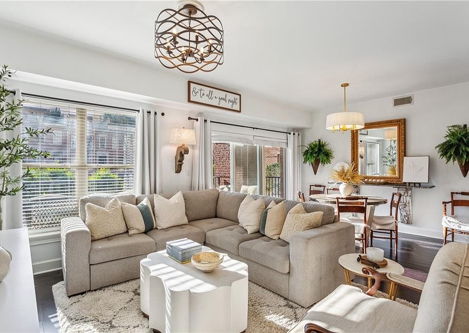 This gorgeous, renovated condo offers a resort-like ambiance and easy living. This unique unit has walk-out access to the beautifully landscaped and maintained courtyard, perfect for dog owners or leisurely walks by the river or to Rays on the River Restaurant. Spacious open floor plan with hardwood floors, renovated kitchen with wine bar, and stunning light fixtures throughout. Two bedrooms plus a private office or den. The primary suite features a spa-like bathroom and a custom walk-in closet. 2nd bedroom also has a generous size bathroom & large walk-in closet. Unit is equipped with a separate laundry room and comes with 2 reserved parking spots in the garage. One River Place is a resort-like community situated on 33 acres on the Chattahoochee River. Unmatched amenities included 24/7 security & concierge, landscape gated grounds, a large clubhouse, 2 saltwater pools, fully equipped gym & fitness classes, spa room, meeting & entertaining space, catering kitchen & coffee bar, fire pit, grilling area, dog park, bike & kayak storage, walking trails, plus private access to Chattahoochee River & restaurants. Very social community with numerous events each month. Easy access to I-75, I-285, The Battery, Cumberland Mall, Sandy Springs City Center & much more.