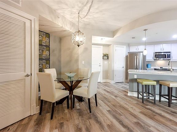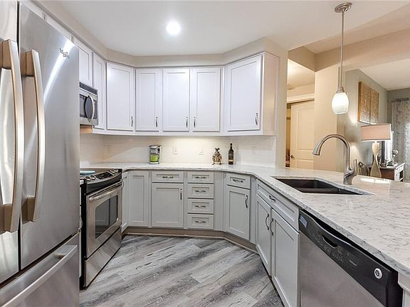 Stylish remodel corner unit with quiet courtyard views. Sleek kitchen boasts quartz counters, refaced shaker soft close cabinets, subway tile backsplash, LVT flooring, chic lighting, designer paint, plantation shutters and much more! All appliances remain. One of two covered parking spaces is income generating. Resort style amenities include attentive concierge, 24 hour security, gated landscaped grounds, renovated clubhouse with two salt water pools, gym, spa room, and dog park. Access to Cochran Shoals at the Chattahoochee and close to fun at The Battery. Easy access to I-285/I-75/400. Luxury living at ORP!