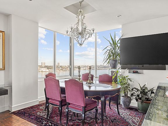 Come home to this highly coveted 1,397SF 2 bedroom, 2.5 Bathroom corner northwestern facing residence. Enjoy Hudson River views from every room. The spacious living room comfortably fits an entertainment center with multiple couches and a separate area for a large dining table. Hardwood floors appear throughout, while the fully renovated open kitchen has abundant storage and plenty of countertop space. The second bedroom fits a queen size bed while the spacious master bedroom comfortably fits a king size bed and additional furniture. The Master also features 2 closets including a walk in closet, and a master bath with a soaking tub and stall shower. The residence comes complete with a Washer/Dryer.
