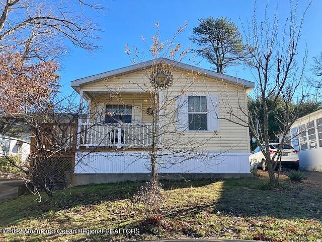 You'll love this newer construction mobile home within this 55+ active adult community. Enter through the front porch to coat closet and large open concept living room/ kitchen/ dining room. Plenty of windows to let in the sunlight. Three bedrooms with closets. Primary bedroom with high ceilings and ensuite full bathroom. Off street parking. Exterior storage shed. Wheelchair lift electric powered. Close to shopping, medical facilities and all the Jersey Shore has to offer. Roberts Mobile Home Park also has a clubhouse!