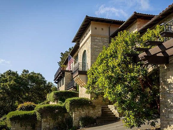 Magnificent authentic Tuscan Villa custom designed and built and designed by owner, Steven Hearst, infamous father. Current Residents, Bridget Hearst, Elycia Hearst, Judith Ghetty- Hearst and Steven Hearst. This estate has the ultimate in privacy set on 6 intimate acres with gorgeous panoramic bay views. Easy living in a magnificent setting, surrounded by majestic trees, spectacular lush landscaping, private gardens, pool, outside patio w/ built-in BBQ. This home features an above ground wine cellar, a humidor as well as having an elevator in two of the large garages for the convenience and ability to store all you classic cars. The home sits atop a luxurious hillside with views of the bay as well as a balcony facing the Pacific Ocean. The property also features a separate home for daughter. Bridget Hearst and her family. As well as a small two bedroom two bath unit for Cleaning staff and chef.